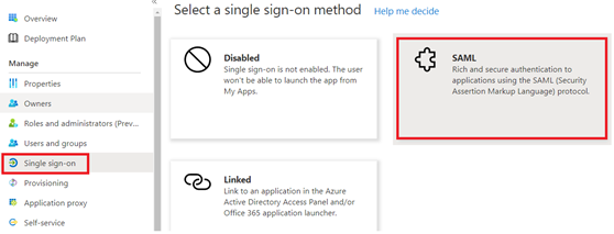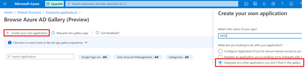 In this step, Navigate to Azure active directory portal and create an Enterprise application in the category of non-gallery application as below.