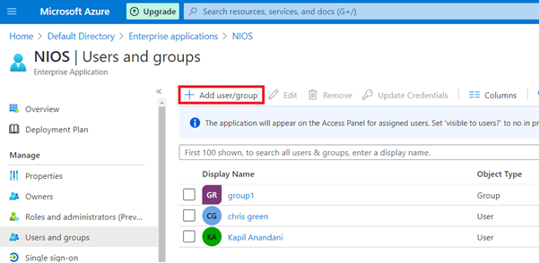 Create or select users/groups as required to interact with Infoblox’s interface as single-sign-on user