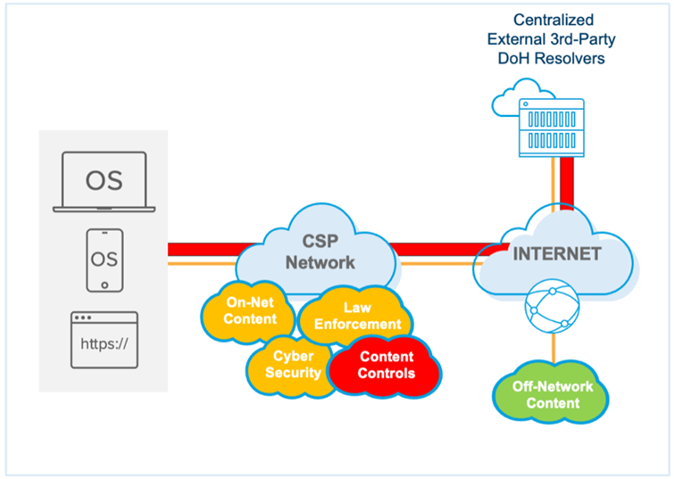 And DNS is used to optimize connectivity to streaming video caches and other content based on the client computer’s IP address. With DoT and DoH, how CDNs localize clients (meaning, the ability to direct traffic to the most geographically optimal CDN caching node) is affected. If CSPs cannot view subscriber DNS queries, they may not be able to route subscribers to the geographically closest or most efficient CDN node.