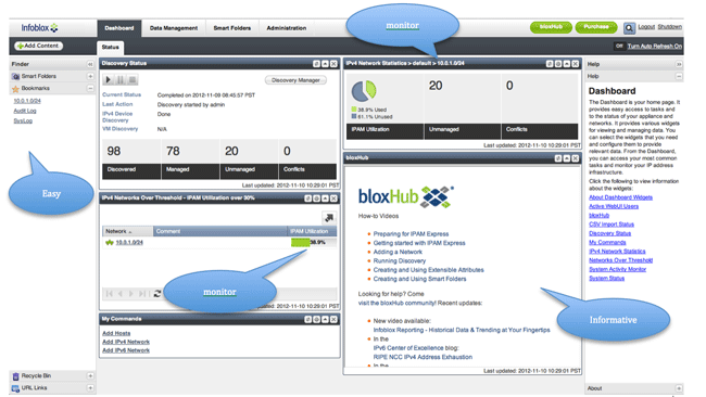 Be informed by joining the IPAM Express bloxHub community and share your questions and ideas with other IPAM Express users. By watching quick how-to videos, reading Infoblox blogs and attending Infoblox webinars. |