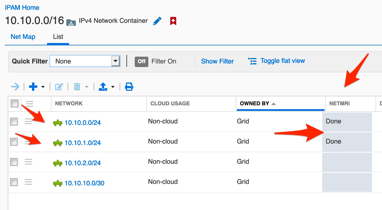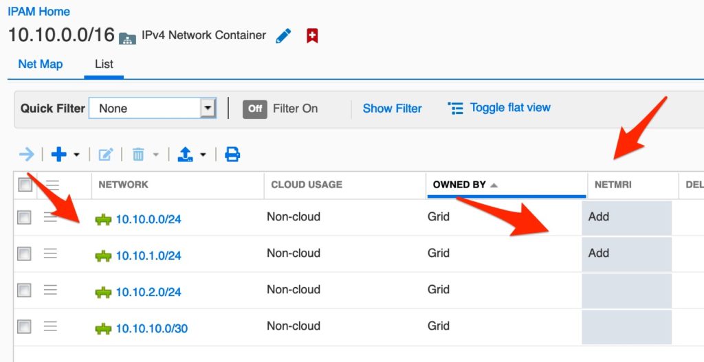 The way we approach this problem since we didn’t want to add all the networks that are currently in IPAM to NetMRI for Discovery. We decided to use Extensible Attributes in IPAM called “NETMRI” and set the value to “Add” and once the network was added to NetMRI we would update the EA-NetMRI to “Done”