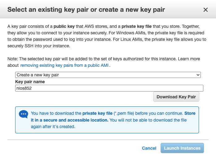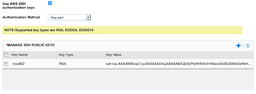 The public key you choose or create in AWS will be added to the default administrator account in NIOS during deployment.