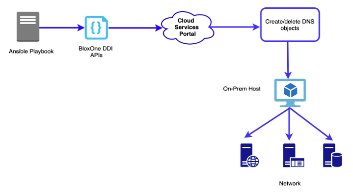 - Leverage the lookup plug-in to query for NIOS objects. Configure and manage NIOS objects, such as networks, network views, zones, etc., directly from Ansible via playbooks.