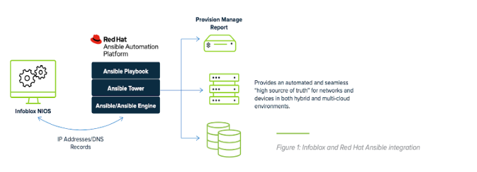 The integration of Ansible with Infoblox enhances the benefits of advanced network automation. The Red Hat Ansible Automation Platform extends beyond traditional tools for server and software installations to encompass the entirety of IT infrastructure, including network resources. The Infoblox NIOS Collection for Ansible Automation Platform is a package of modules and plugins that allows managing Infoblox Network Identity Operating System (NIOS) objects and functions through APIs leveraging Ansible playbooks. The combined Infoblox/Red Hat solution enables network professionals to overcome the burden of maintaining a static registry of devices and gain a centralized and highly efficient way to manage DNS, DHCP, and IPAM (DDI) automation of VMs and containerized workloads deployed across multiple platforms.