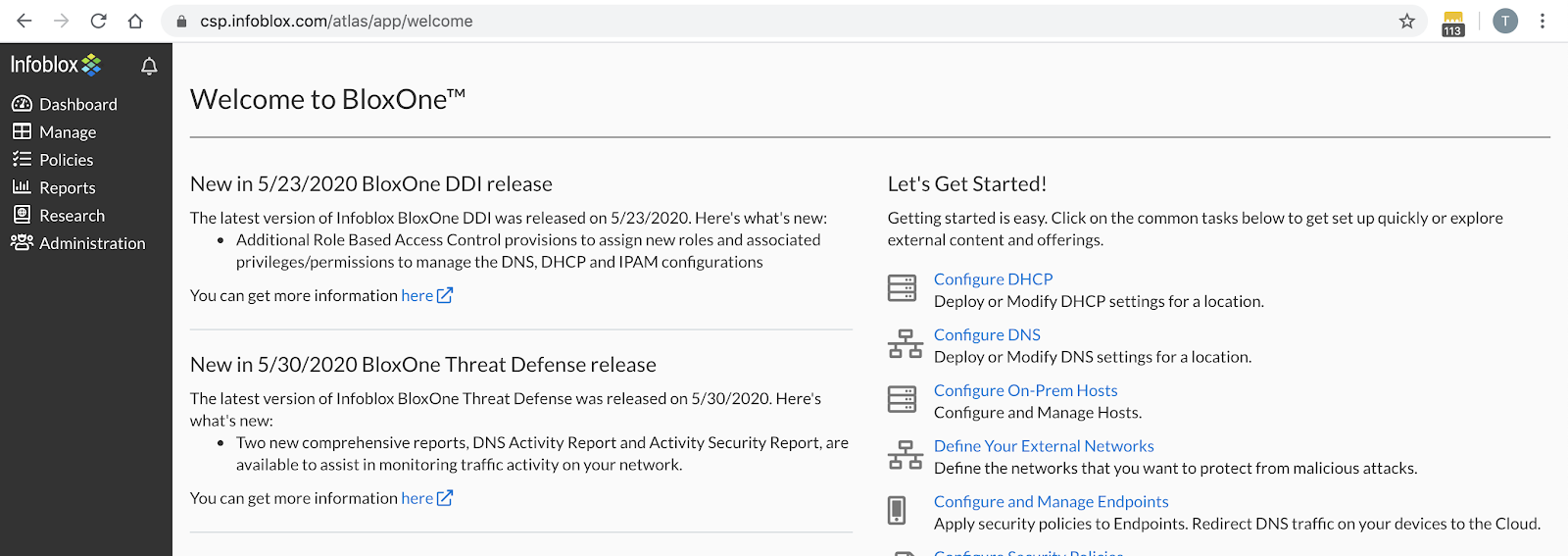 - Log into www.csp.infoblox.com.