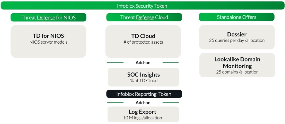 Think of Infoblox Security Tokens as a universal key that unlocks capabilities across the Infoblox security suite. You buy the tokens you need and apply them where they are needed: