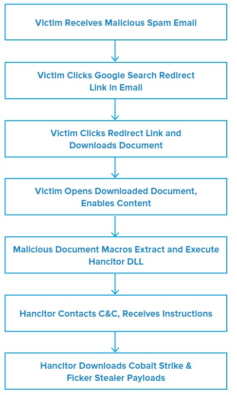 On 18 March, security researcher Brad Duncan reported a malspam campaign that used DocuSign-themed lures to entice users to download and open Microsoft Word documents with malicious macros that install embedded copies of the Hancitor trojan downloader.1 These copies of Hancitor delivered additional payloads containing Cobalt Strike and Ficker Stealer.