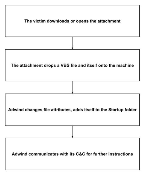 To achieve persistence, Adwind drops itself into the Startup folder. To hide itself, it changes its file attributes by using attrib.exe. Finally, it attempts to connect to its command and control (C&C) IP and, if it succeeds, serves as a remote-controlled backdoor to the victim’s machine.