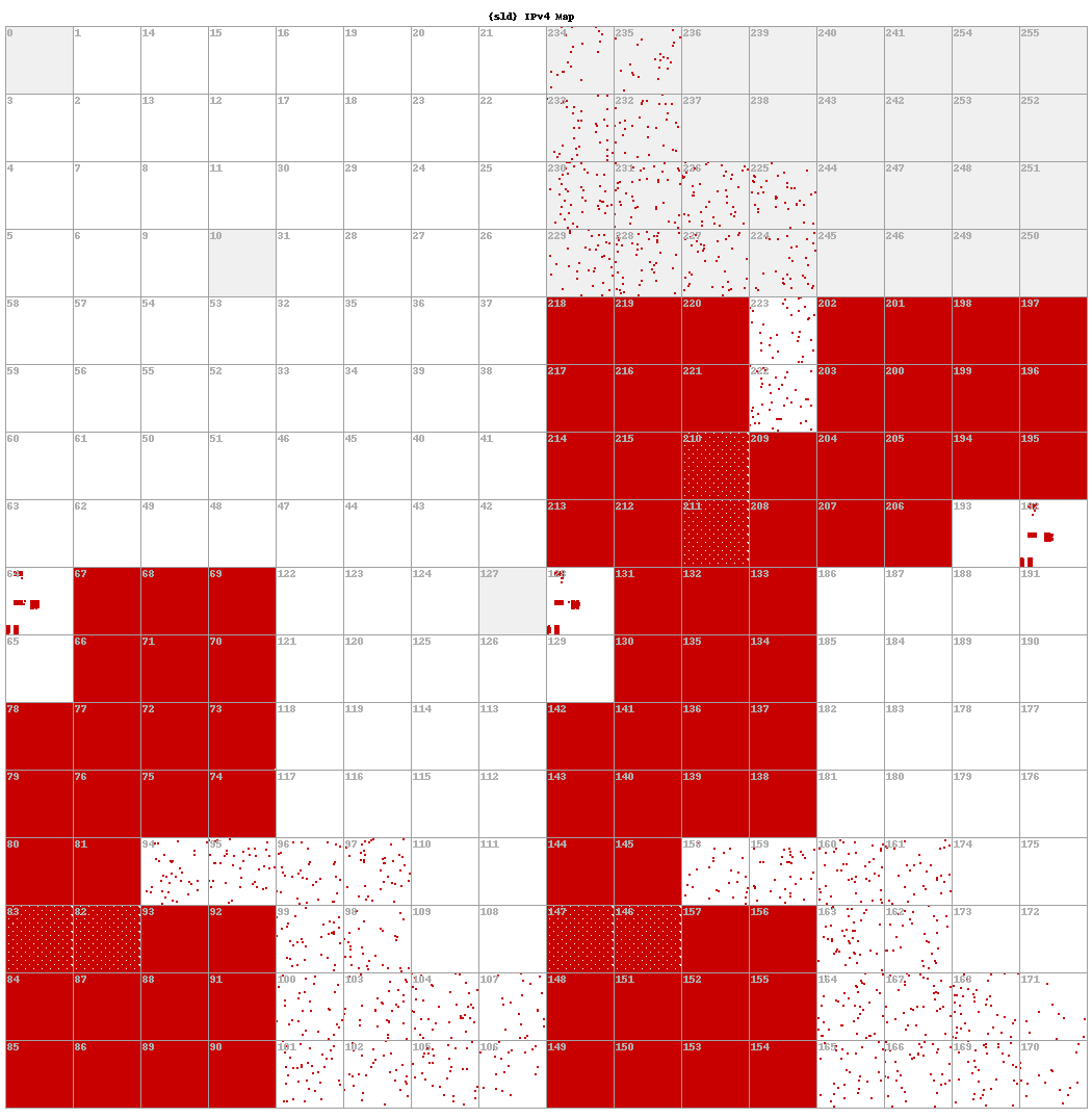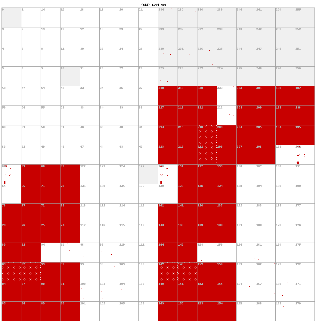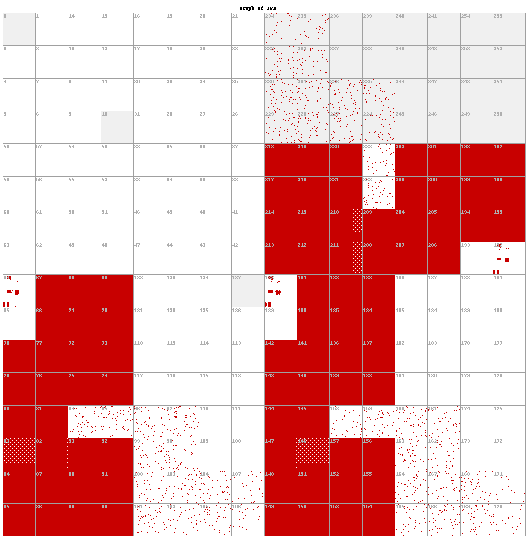 Figure 9. Zoomed in version of Figure 8, to show the repeating 8×8 pattern of Decoy Dog IPv4 resolution.