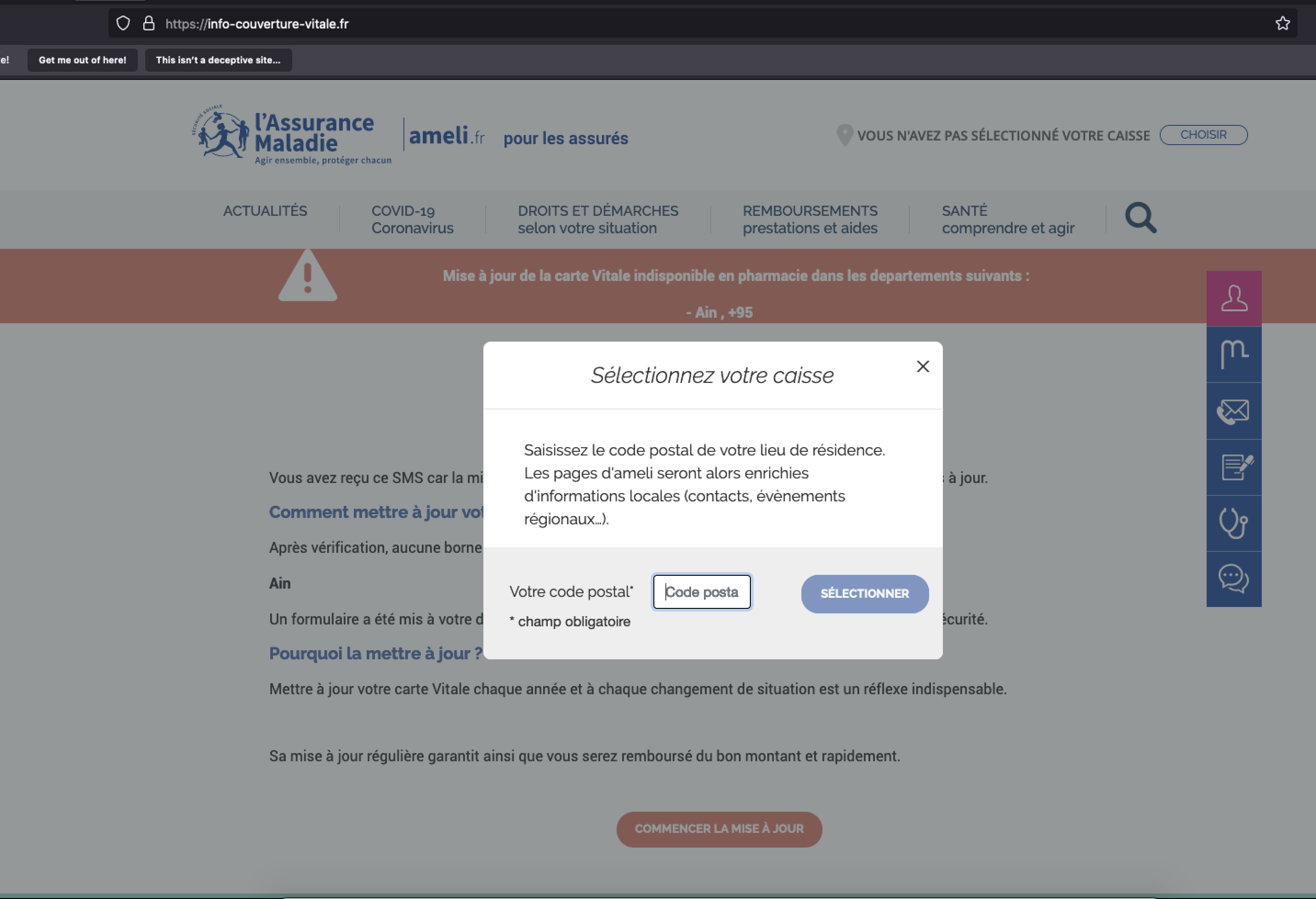 Figure 2: An example of a phishing page masquerading as the portal for the website for Sécurité Sociale