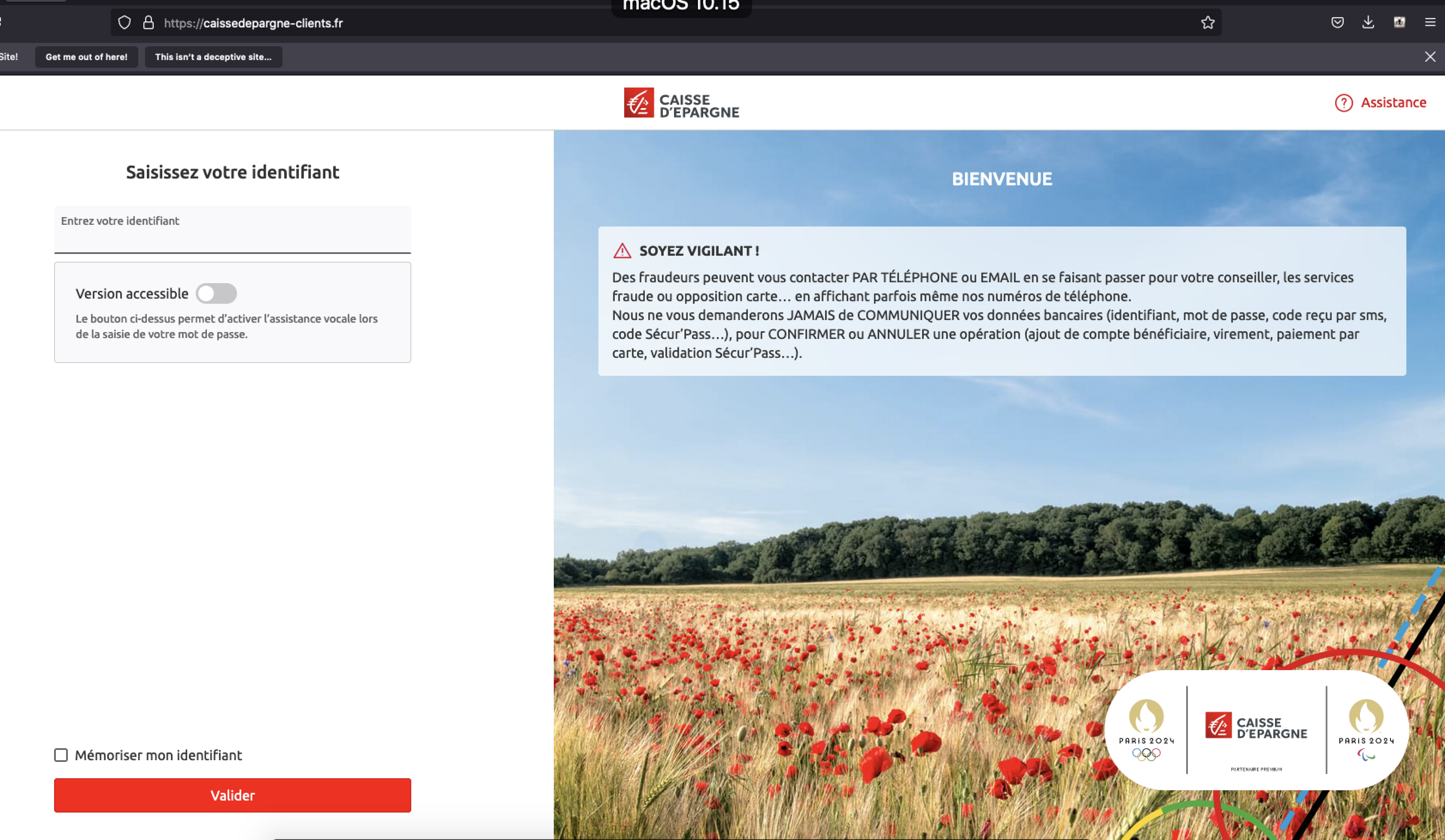 Figure 3: Example of a phishing page targeting customers of the Caisse d’Epargne bank