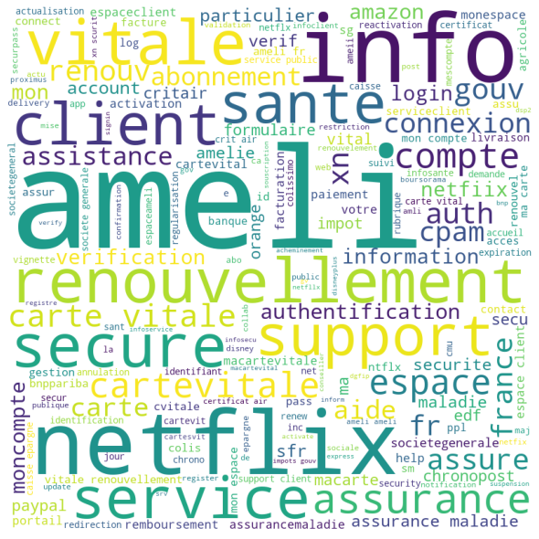 Figure 4: Most commonly used words in the domain names