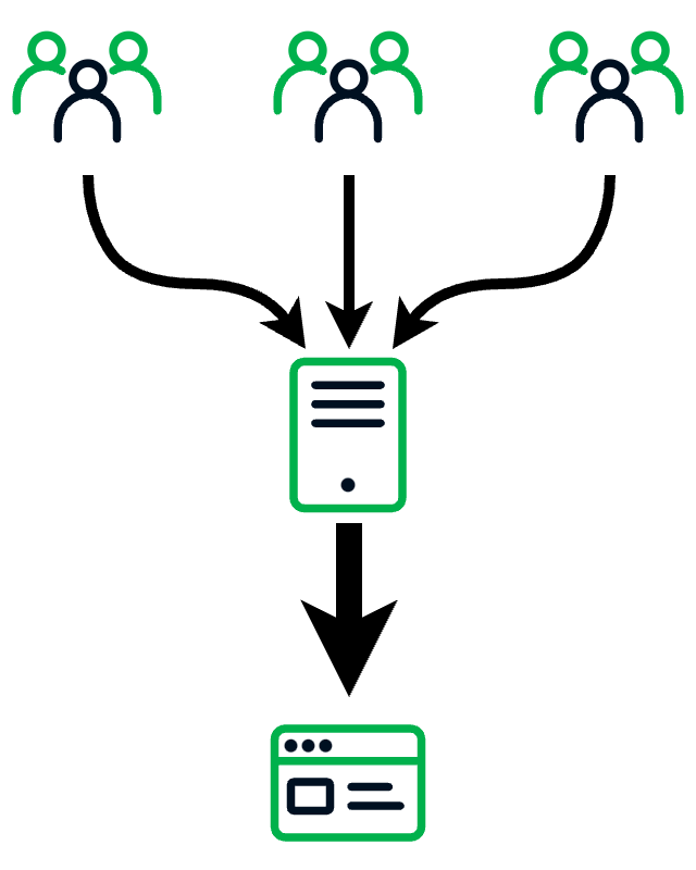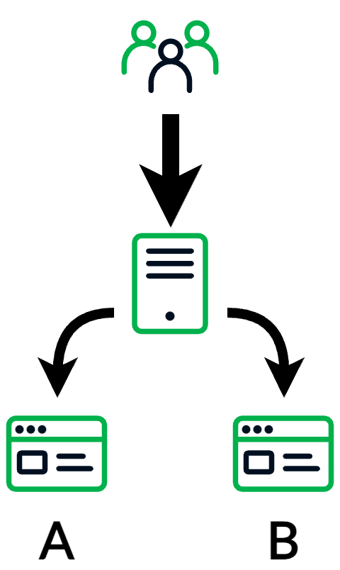 Marketers also frequently use TDSs when they perform A/B testing (Figure 2). For example, when a marketer wants to test a new web design, they could use a TDS to send half their visitors to the new version of the site and the other half to the current version. Marketers can then analyze how visitor behavior is different between the two versions, thereby evaluating the new design. If it works well, they can then use the TDS to just send all the traffic to the new version.