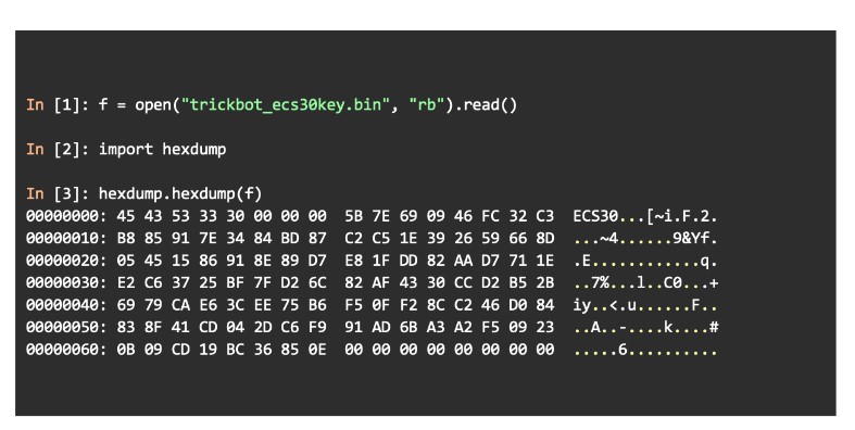 Trickbot uses PCS30 signature verification to check whether embedded or received resources are valid. For decryption, Trickbot uses the same XOR process as it used for the first step of AES key generation. The algorithm used to validate signatures is ECDSA_P384.11