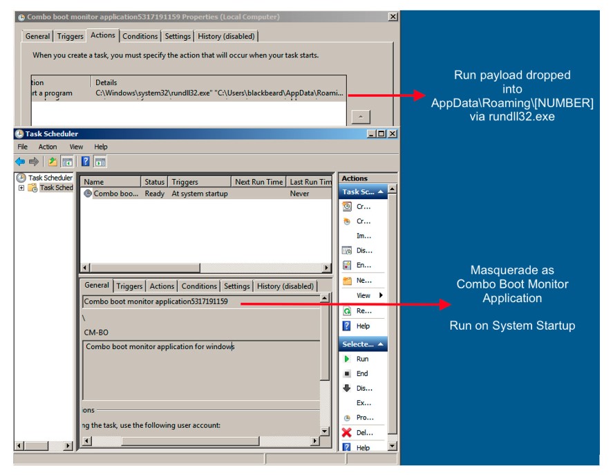 Other reports state that the scheduled time differs between variants, just as there is variance in the tool that the malware masquerades as.
