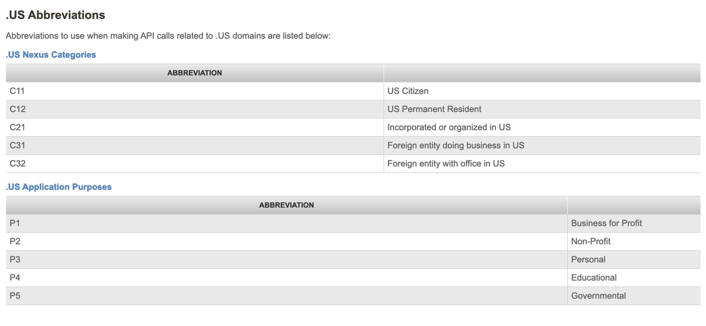 Figure 4. Registrants of domain names within the usTLD must choose a related Nexus category and application purpose from those listed above. This information is published in the WHOIS record.