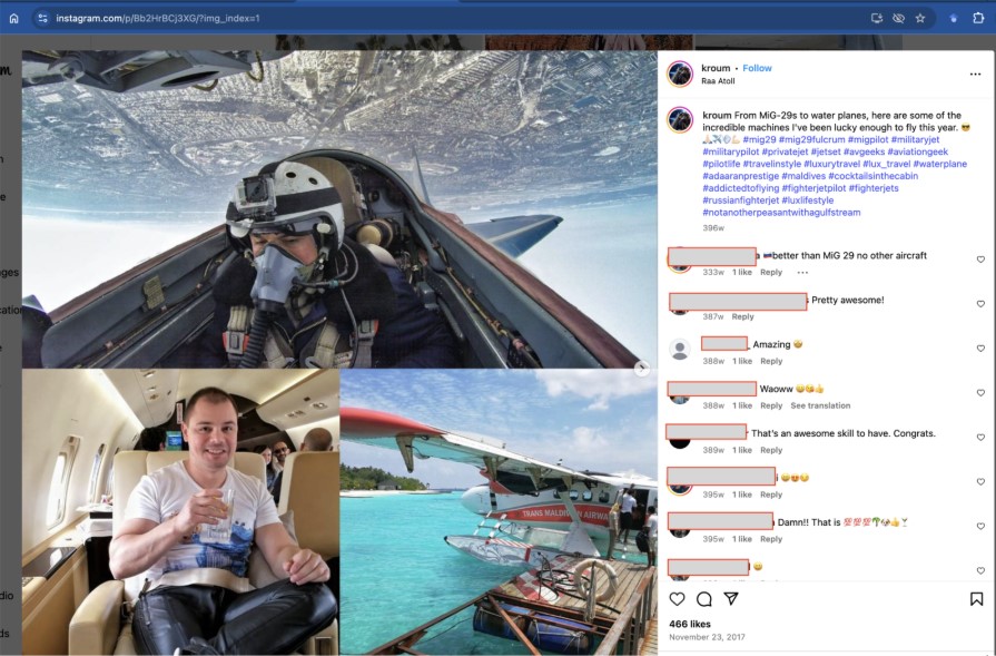 Figure 12. An Instagram post by Kroum Vassilev recapping adventures in planes. Captured June 2025.