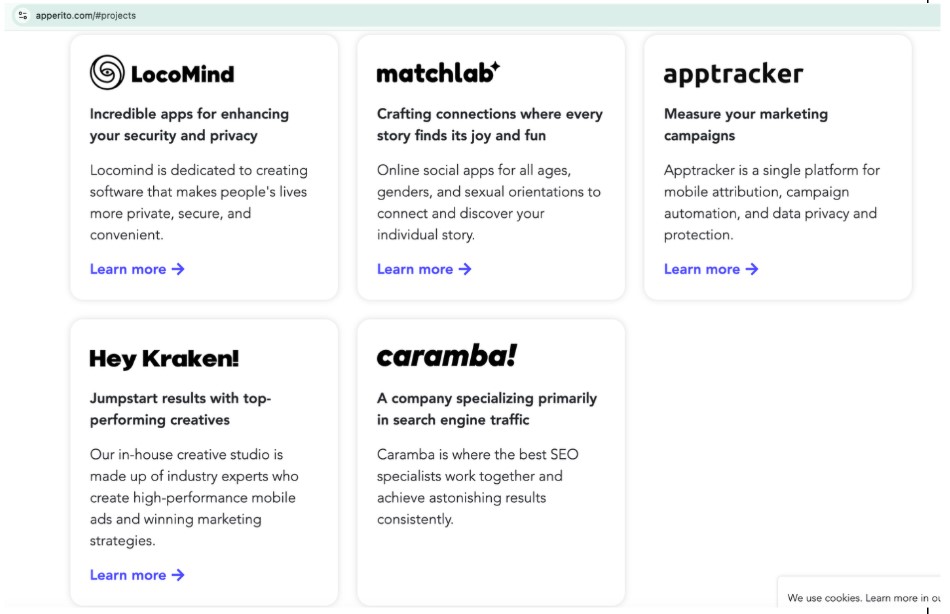 Figure 16. Apperito.com projects as shown on their website in November 2024