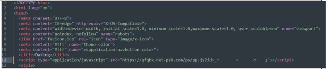 Figure 24. The push notification script that is inserted in a website header to lead visitors to a request to allow browser notifications, according to TacoLoco documentation. The domain nxt-psh[.]com is one of several domains used for push notifications.