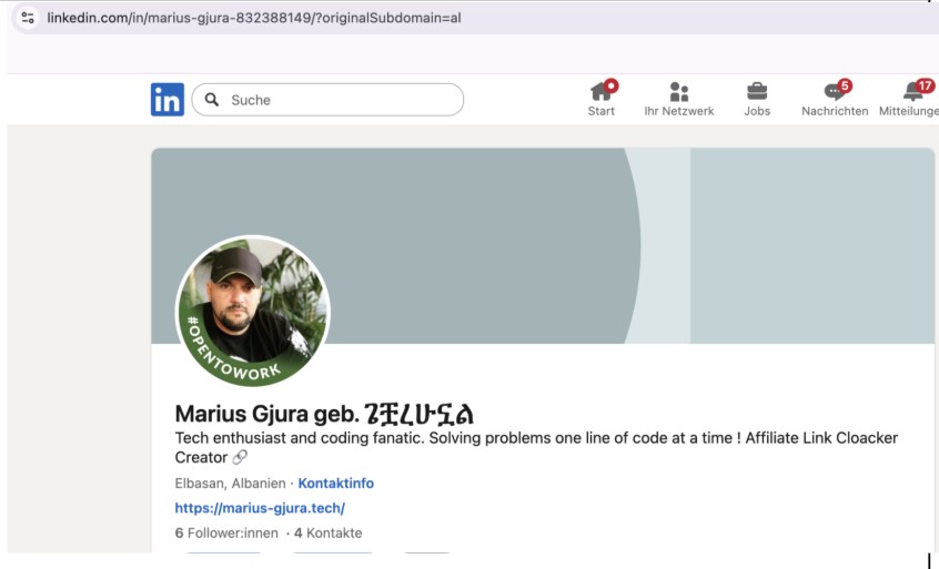 Not only has Los Pollos acknowledged they receive black hat traffic, but some black hat hackers have claimed direct ties to Los Pollos. Marius Gjura, who appears to be Albanian in origin, stated on LinkedIn (Figures 28 and 29) that he developed affiliate marketing cloaking software and further indicated he was connected to Los Pollos and iMonetizeIT (yes, the same iMonetizeIT that owns AdsBridge, whose smartlinks are described in Figure 20).