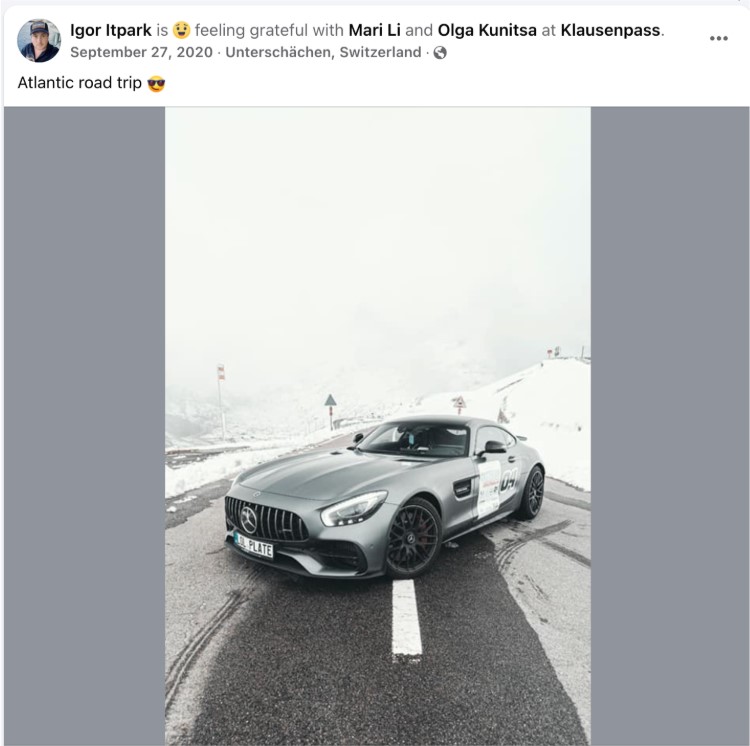 Vassilev has a long history in the adult advertising industry. His LinkedIn profile claims he was the COO of bookmark[.]com from 2009-2012, during which time it was a pornography site, and his earlier firm, Marketing Extensions, also appears to have been in the same line of business. Like many of the individuals involved in VexTrio, Vassilev tries to balance a professional appearance with an adrenaline-filled lifestyle. He’s made appearances on Bulgarian TV for his energy company; see Figure 11. In contrast to the suit and tie, his social media shows his love of cars and the fast life. He posted video of a supersonic stratospheric flight (55,000 feet) from a Russian airbase in 2017; see Figure 12. The love of the fast life is a common theme among the key figures of VexTrio. They all seem involved in racing or driving expensive cars, as well as other adrenaline-filled sports.